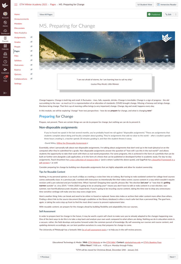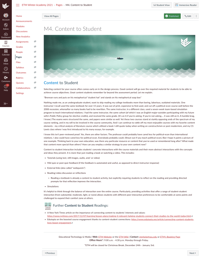 I led the design and delivery of a week-long faculty development workshop that helped instructors redesign existing courses for online delivery while establishing a shared vision for what makes an online course uniquely SPU.